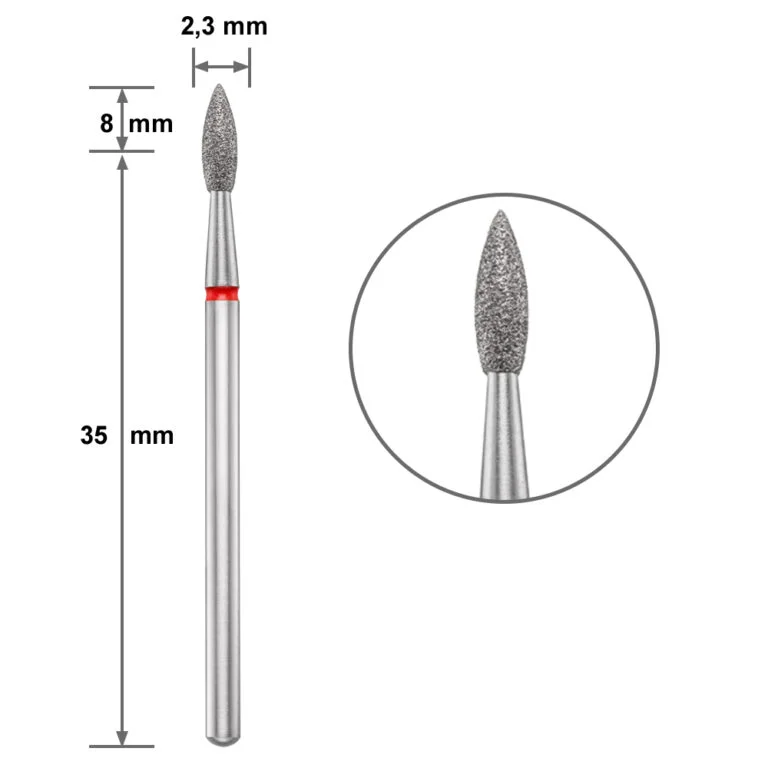 Ponteira (broca) Diamantada – FLAMA/CHAMA (ponta aguda) – VERMELHA – DD-243R-023XL